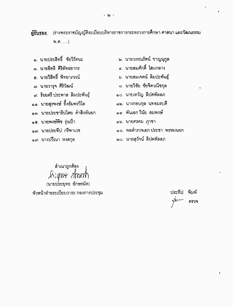 • ร่างพระราชบัญญัติระเบียบบริหารราชการกระทรวงการศึกษา ศาสนา และวัฒนธรรม พ.ศ. ....(นายวุฒิชัย สงวนวงศ์ชัย และนายสมชัย ฉัตรพัฒนศิริ เป็นผู้เสนอ)