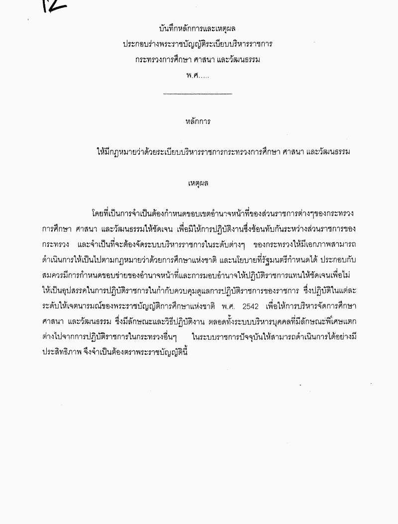 • ร่างพระราชบัญญัติระเบียบบริหารราชการกระทรวงการศึกษา ศาสนา และวัฒนธรรม พ.ศ. ....