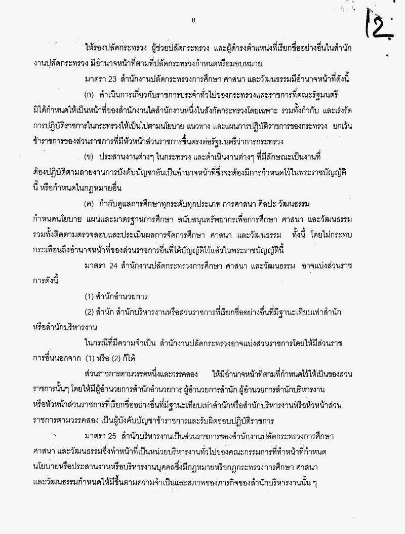• ร่างพระราชบัญญัติระเบียบบริหารราชการกระทรวงการศึกษา ศาสนา และวัฒนธรรม พ.ศ. ....