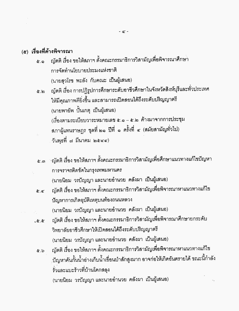 • ระเบียบวาระการประชุมสภาผู้แทนราษฎร ชุดที่ 21 ปีที่ 1 ครั้งที่ 18 (สมัยสามัญทั่วไป)วันพฤหัสบดีที่ 3 พฤษภาคม 2544