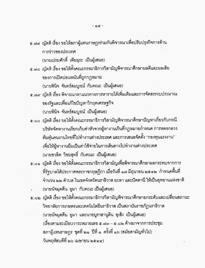 • ระเบียบวาระการประชุมสภาผู้แทนราษฎร ชุดที่ 21 ปีที่ 1 ครั้งที่ 18 (สมัยสามัญทั่วไป)วันพฤหัสบดีที่ 3 พฤษภาคม 2544