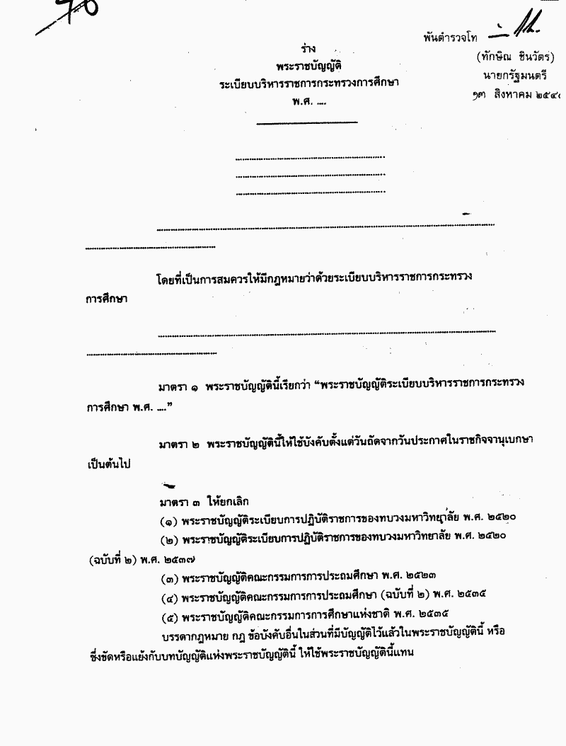 ชื่อเอกสาร :   ร่างพระราชบัญญัติระเบียบบริหารราชการกระทรวงการศึกษา พ.ศ. .....
