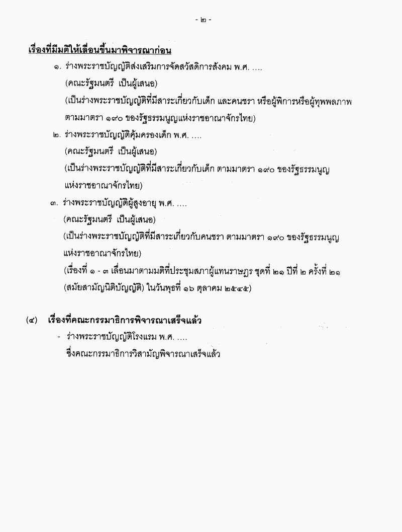 • ระเบียบวาระการประชุมสภาผู้แทนราษฎร ชุดที่ 21 ปีที่ 2 ครั้งที่ 23 (สมัยสามัญนิติบัญญัติ) วันพฤหัสบดีที่ 24 ตุลาคม 2545