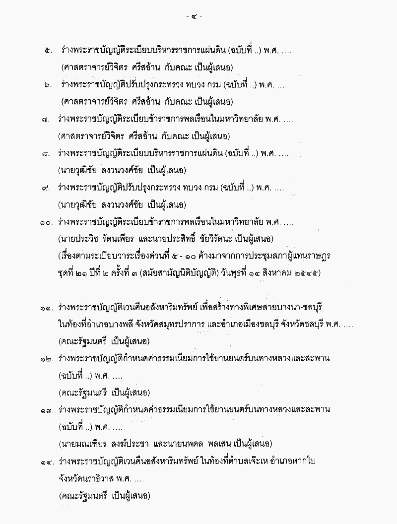 • ระเบียบวาระการประชุมสภาผู้แทนราษฎร ชุดที่ 21 ปีที่ 2 ครั้งที่ 23 (สมัยสามัญนิติบัญญัติ) วันพฤหัสบดีที่ 24 ตุลาคม 2545
