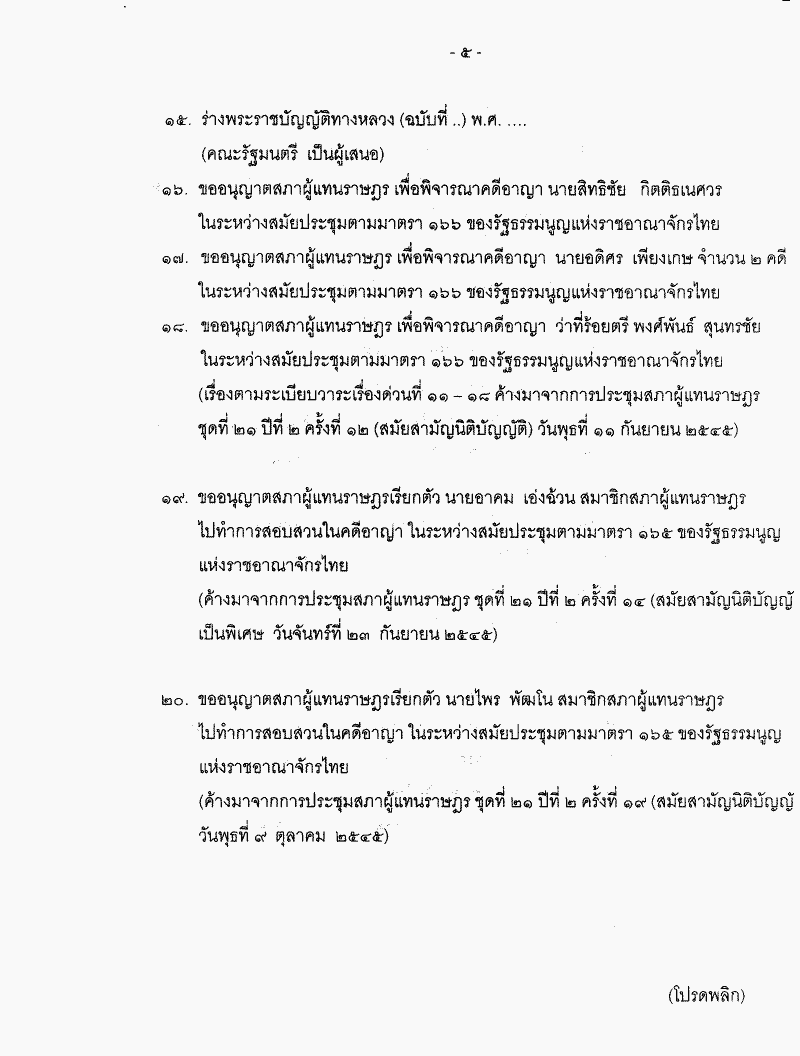• ระเบียบวาระการประชุมสภาผู้แทนราษฎร > ชุดที่ 21 > ปีที่ 2 > สมัยสามัญนิติบัญญัติ > ครั้งที่ 23