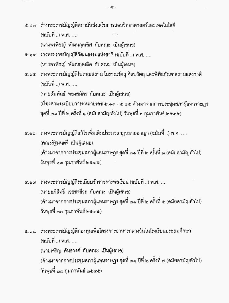 • ระเบียบวาระการประชุมสภาผู้แทนราษฎร > ชุดที่ 21 > ปีที่ 2 > สมัยสามัญนิติบัญญัติ > ครั้งที่ 23