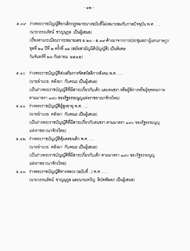 • ระเบียบวาระการประชุมสภาผู้แทนราษฎร ชุดที่ 21 ปีที่ 2 ครั้งที่ 23 (สมัยสามัญนิติบัญญัติ) วันพฤหัสบดีที่ 24 ตุลาคม 2545