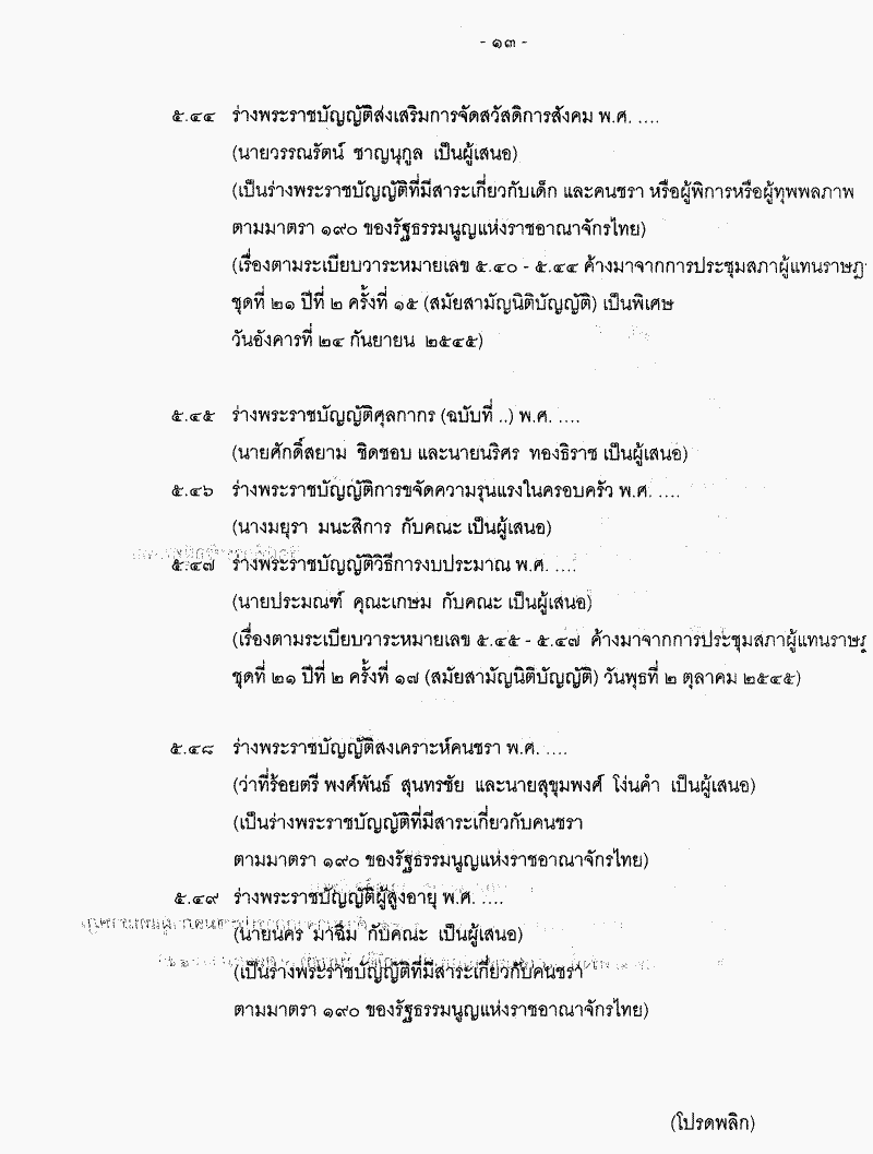• ระเบียบวาระการประชุมสภาผู้แทนราษฎร > ชุดที่ 21 > ปีที่ 2 > สมัยสามัญนิติบัญญัติ > ครั้งที่ 23