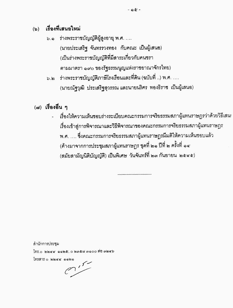 • ระเบียบวาระการประชุมสภาผู้แทนราษฎร > ชุดที่ 21 > ปีที่ 2 > สมัยสามัญนิติบัญญัติ > ครั้งที่ 23