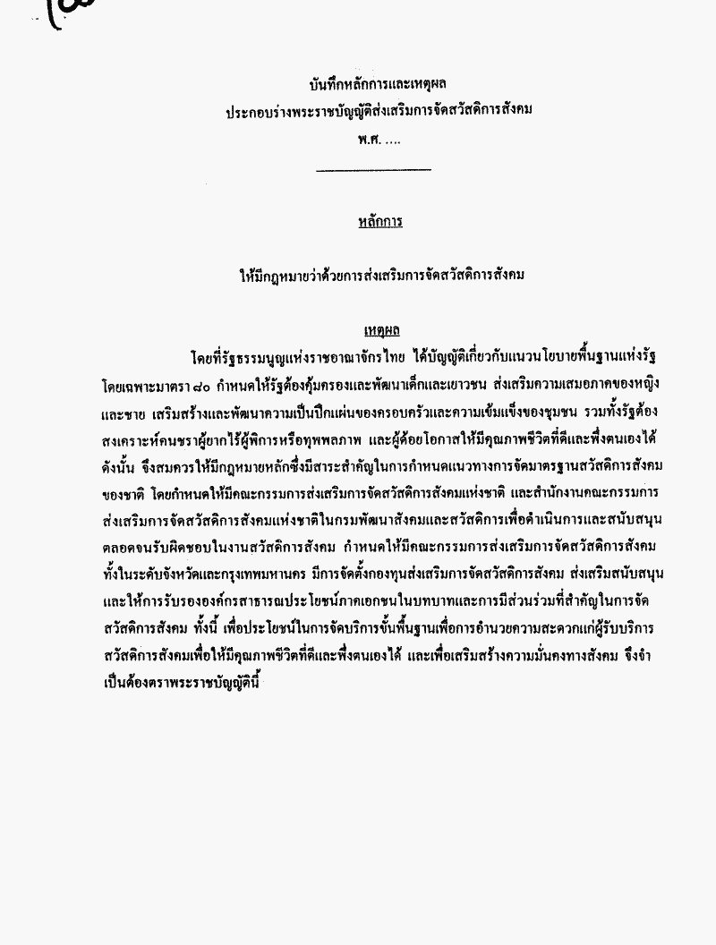 ชื่อเอกสาร :   ร่างพระราชบัญญัติส่งเสริมการจัดสวัสดิการสังคม พ.ศ..... (คณะรัฐมนตรี เป็นผู้เสนอ) (เป็นร่างพระราชบัญญัติที่มีสาระเกี่ยวกับเด็ก และคนชรา หรือผู้พิการหรือผู้ทุพพลภาพตามมาตรา 190 ของรัฐธรรมนูญแห่งราชอาณาจักรไทย)