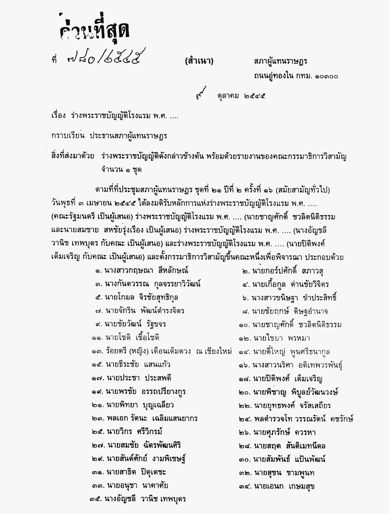 ร่างพระราชบัญญัติโรงแรม พ.ศ..... ซึ่งคณะกรรมาธิการวิสามัญพิจารณาเสร็จแล้ว