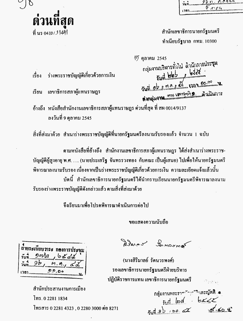 • ร่างพระราชบัญญัติเกี่ยวด้วยการเงิน