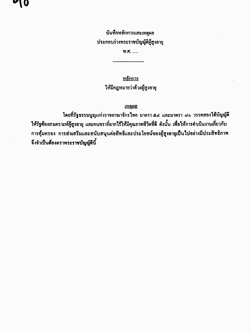 ชื่อเอกสาร :   ร่างพระราชบัญญัติผู้สูงอายุ พ.ศ..... (นายประเสริฐ จันทรรวงทอง กับคณะ เป็นผู้เสนอ) (เป็นร่างพระราชบัญญัติที่มีสาระเกี่ยวกับคนชราตามมาตรา 190 ของรัฐธรรมนูญแห่งราชอาณาจักรไทย)