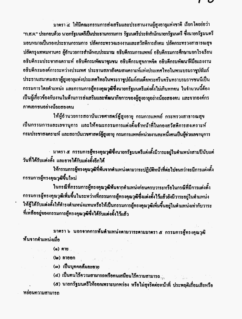 ชื่อเอกสาร :   ร่างพระราชบัญญัติผู้สูงอายุ พ.ศ..... (นายประเสริฐ จันทรรวงทอง กับคณะ เป็นผู้เสนอ) (เป็นร่างพระราชบัญญัติที่มีสาระเกี่ยวกับคนชราตามมาตรา 190 ของรัฐธรรมนูญแห่งราชอาณาจักรไทย)
