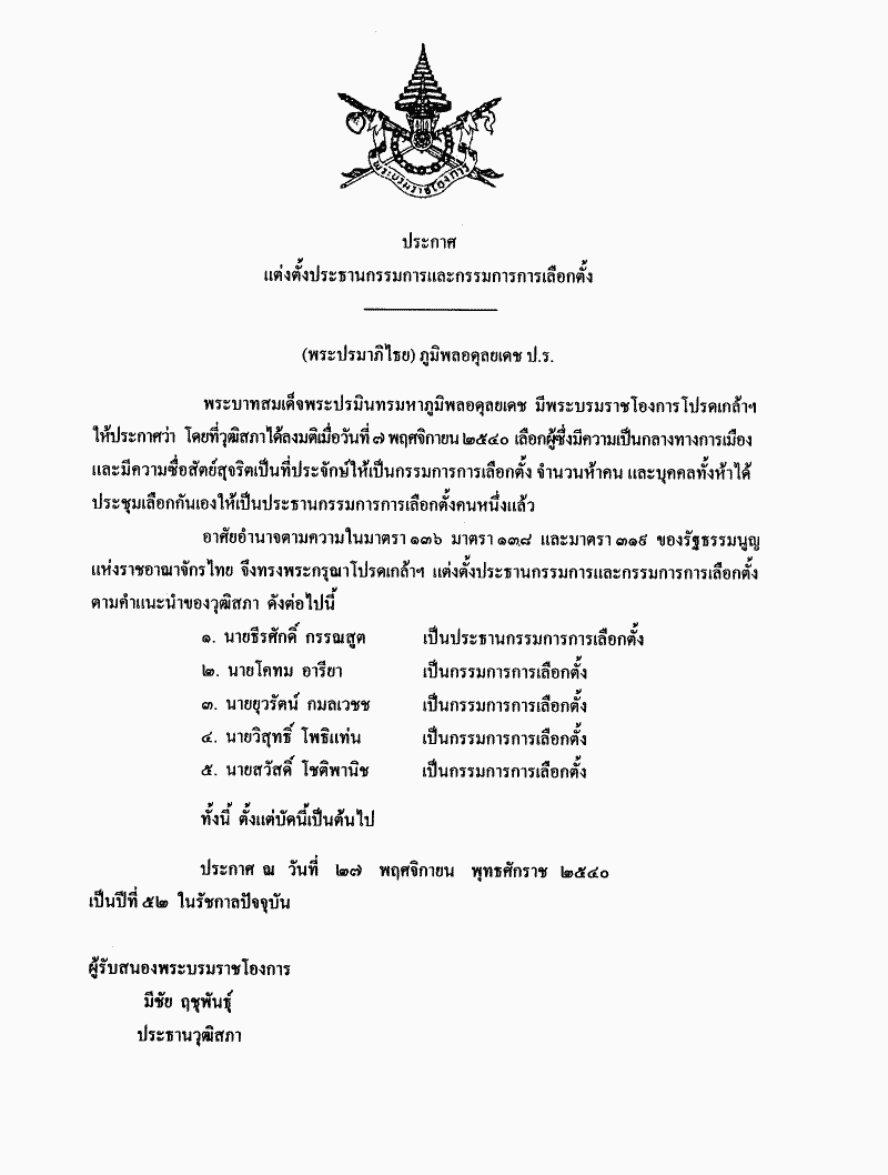 รายงานผลการปฎิบัติงานของคณะกรรมการการเลือกตั้งประจำปี 2544