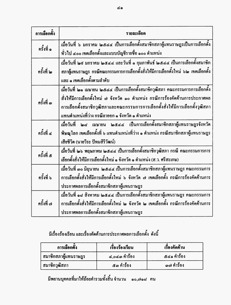 รายงานผลการปฎิบัติงานของคณะกรรมการการเลือกตั้งประจำปี 2544