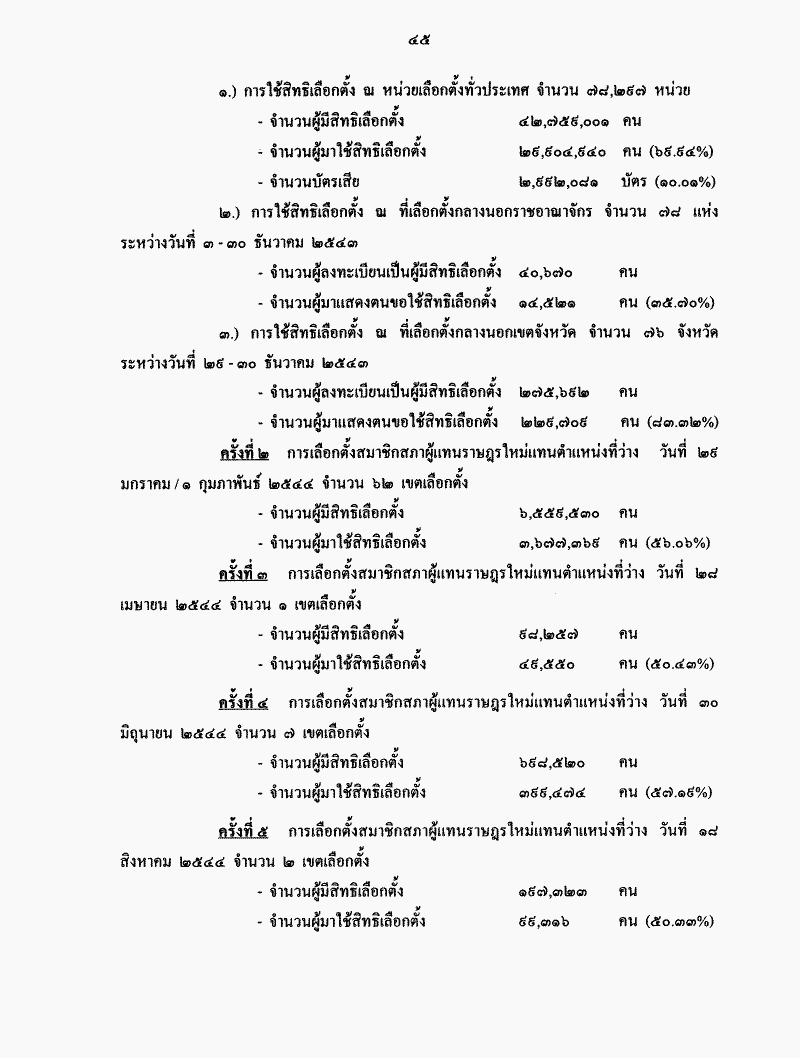 รายงานผลการปฎิบัติงานของคณะกรรมการการเลือกตั้งประจำปี 2544