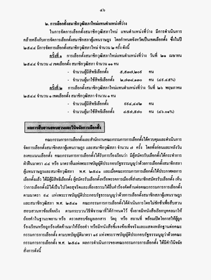 รายงานผลการปฎิบัติงานของคณะกรรมการการเลือกตั้งประจำปี 2544