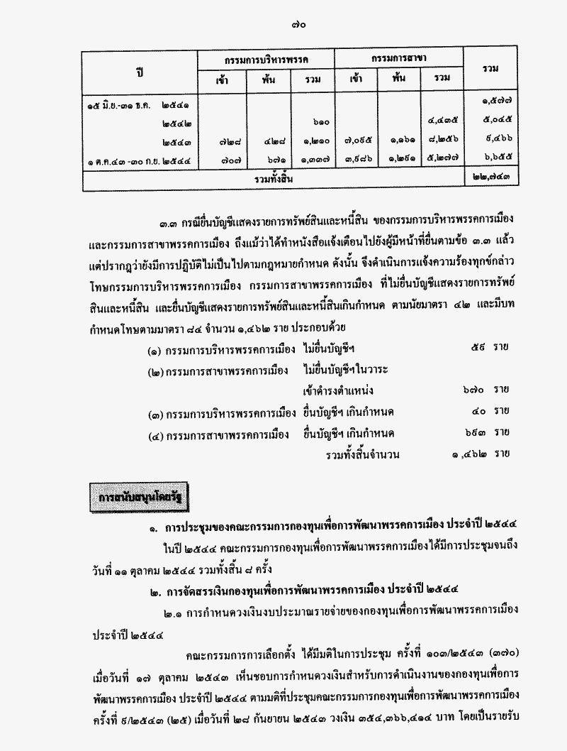 รายงานผลการปฎิบัติงานของคณะกรรมการการเลือกตั้งประจำปี 2544