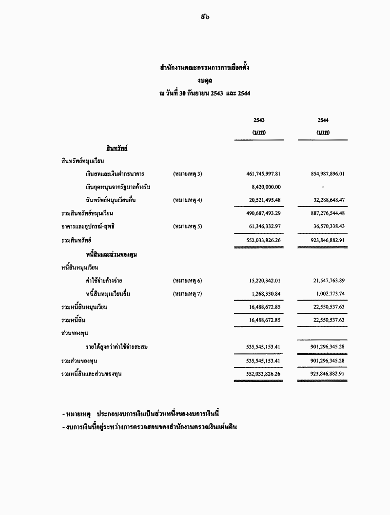 รายงานผลการปฎิบัติงานของคณะกรรมการการเลือกตั้งประจำปี 2544