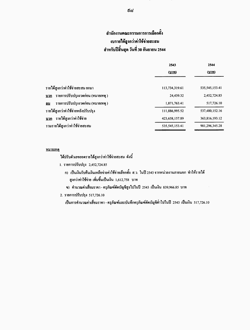 รายงานผลการปฎิบัติงานของคณะกรรมการการเลือกตั้งประจำปี 2544