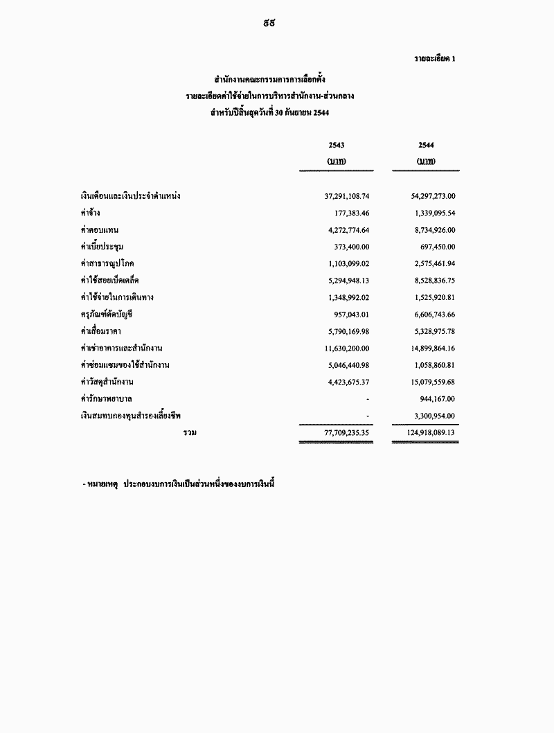รายงานผลการปฎิบัติงานของคณะกรรมการการเลือกตั้งประจำปี 2544