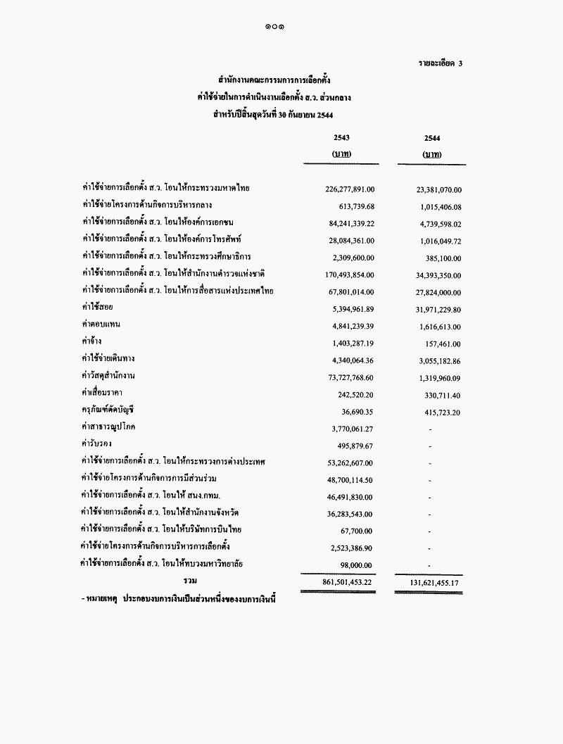 รายงานผลการปฎิบัติงานของคณะกรรมการการเลือกตั้งประจำปี 2544