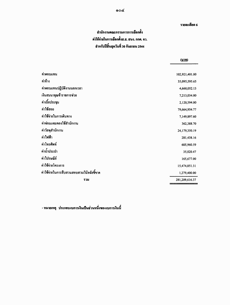 รายงานผลการปฎิบัติงานของคณะกรรมการการเลือกตั้งประจำปี 2544