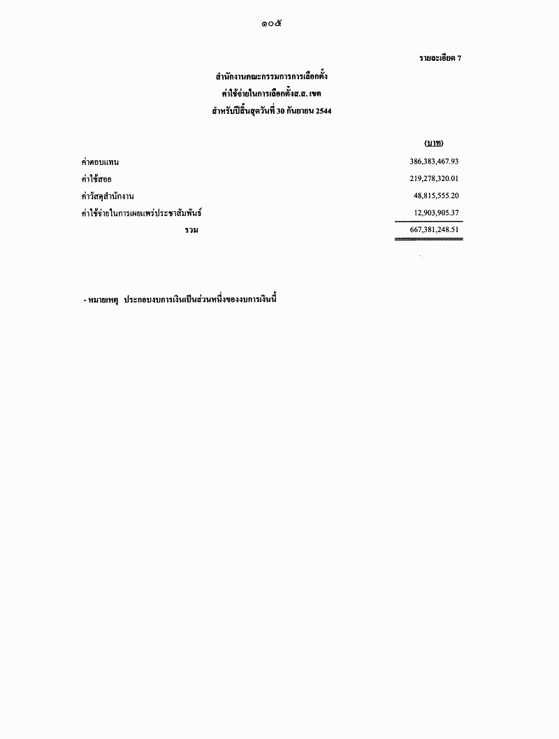 รายงานผลการปฎิบัติงานของคณะกรรมการการเลือกตั้งประจำปี 2544