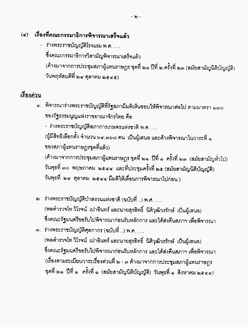ระเบียบวาระการประชุมสภาผู้แทนราษฎร ชุดที่ 21 ปีที่ 2 ครั้งที่ 24 (สมัยสามัญนิติบัญญัติ) วันพุธที่ 30 ตุลาคม 2545 |