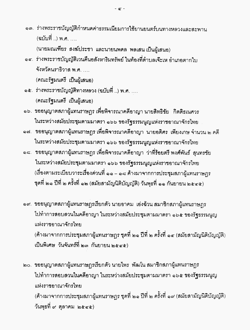 • ระเบียบวาระการประชุมสภาผู้แทนราษฎร ชุดที่ 21 ปีที่ 2 ครั้งที่ 24 (สมัยสามัญนิติบัญญัติ) วันพุธที่ 30 ตุลาคม 2545