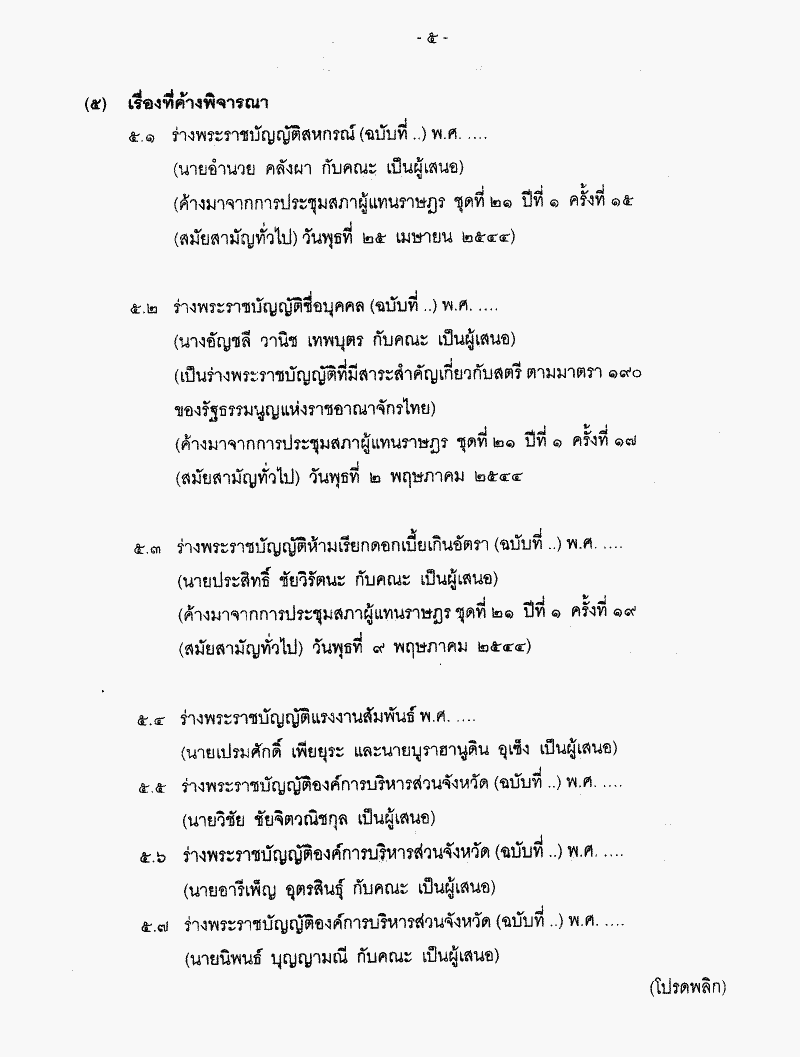 ชื่อเอกสาร : ระเบียบวาระการประชุมสภาผู้แทนราษฎร ชุดที่ 21 ปีที่ 2 ครั้งที่ 24 (สมัยสามัญนิติบัญญัติ) วันพุธที่ 30 ตุลาคม 2545