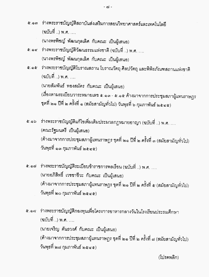 • ระเบียบวาระการประชุมสภาผู้แทนราษฎร > ชุดที่ 21 > ปีที่ 2 > สมัยสามัญนิติบัญญัติ > ครั้งที่ 24