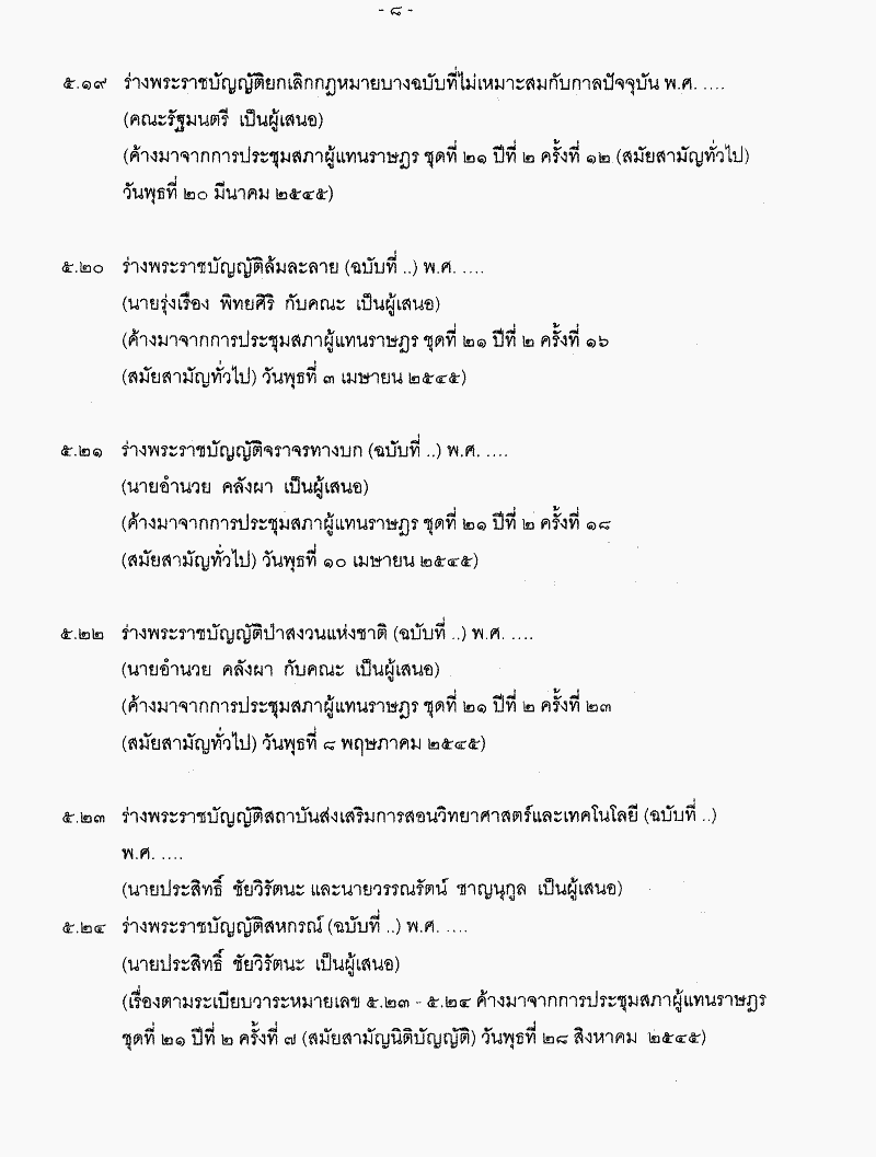 • ระเบียบวาระการประชุมสภาผู้แทนราษฎร ชุดที่ 21 ปีที่ 2 ครั้งที่ 24 (สมัยสามัญนิติบัญญัติ) วันพุธที่ 30 ตุลาคม 2545