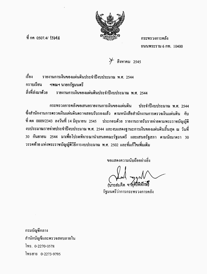 รับทราบรายงานการเงินของแผ่นดิน ประจำปีงบประมาณ พ.ศ. 2544