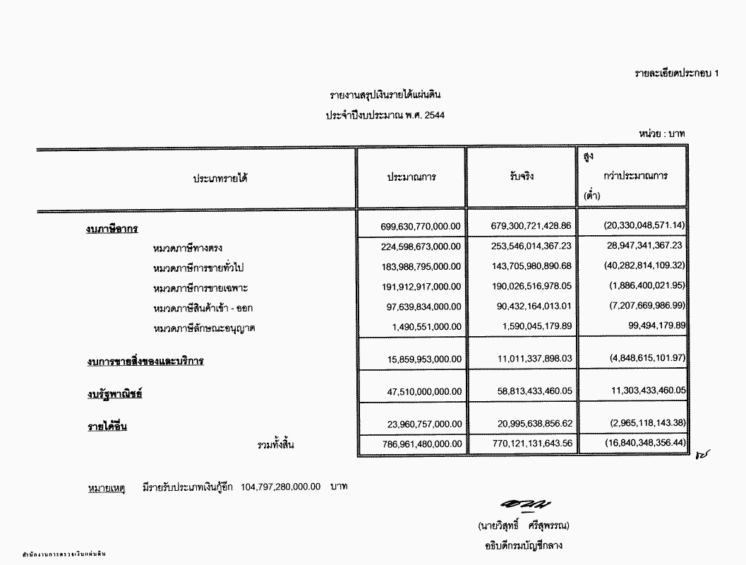 รายงานการเงินของแผ่นดิน ประจำปีงบประมาณ พ.ศ. 2544