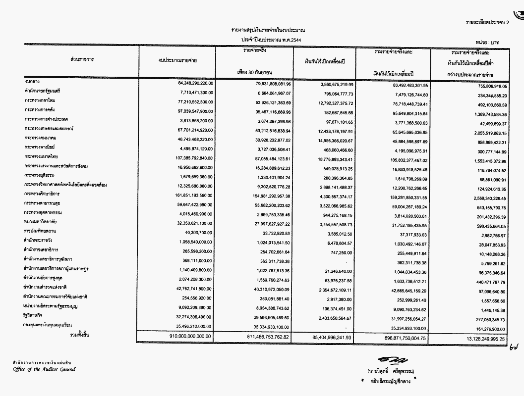 รายงานการเงินของแผ่นดิน ประจำปีงบประมาณ พ.ศ. 2544