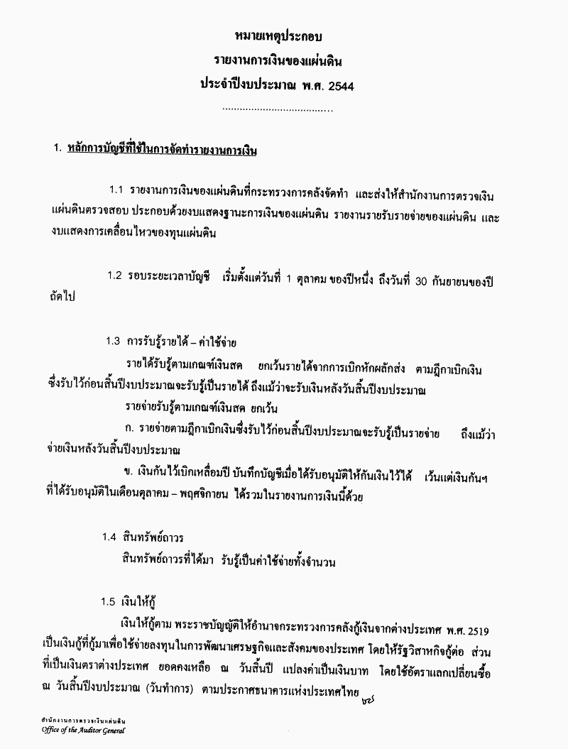 รายงานการเงินของแผ่นดิน ประจำปีงบประมาณ พ.ศ. 2544