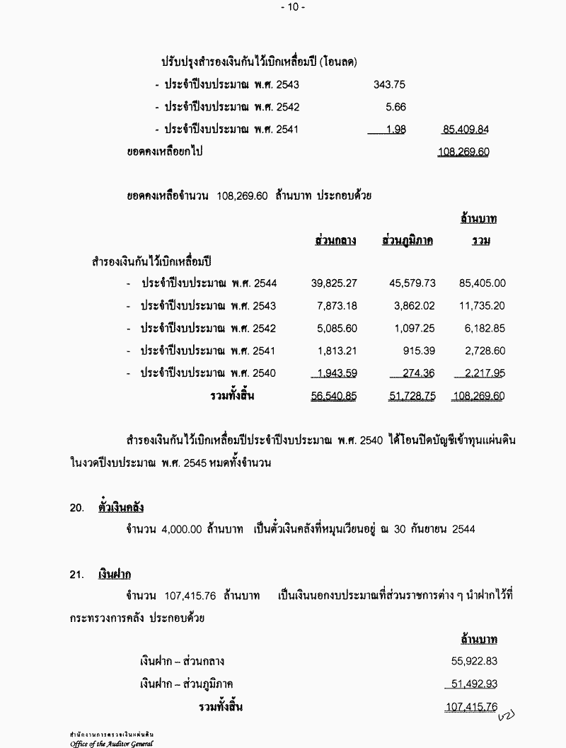 รับทราบรายงานการเงินของแผ่นดิน ประจำปีงบประมาณ พ.ศ. 2544
