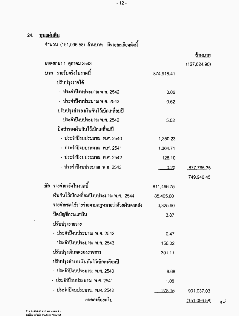 รายงานการเงินของแผ่นดิน ประจำปีงบประมาณ พ.ศ. 2544