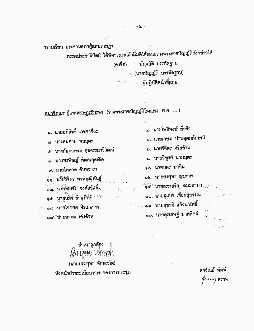 ชื่อเอกสาร :   ๖.๑ ร่างพระราชบัญญัติโรงแรม พ.ศ. .... (นางอัญชลี วานิช เทพบุตร กับคณะ เป็นผู้เสนอ)