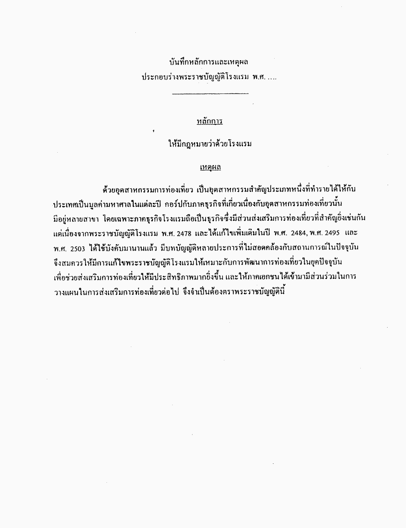 • ร่างพระราชบัญญัติโรงแรม พ.ศ. ....