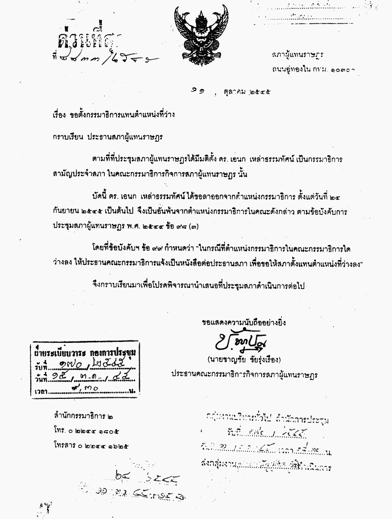 ขอตั้งกรรมาธิการแทนตำแหน่งที่ว่าง |