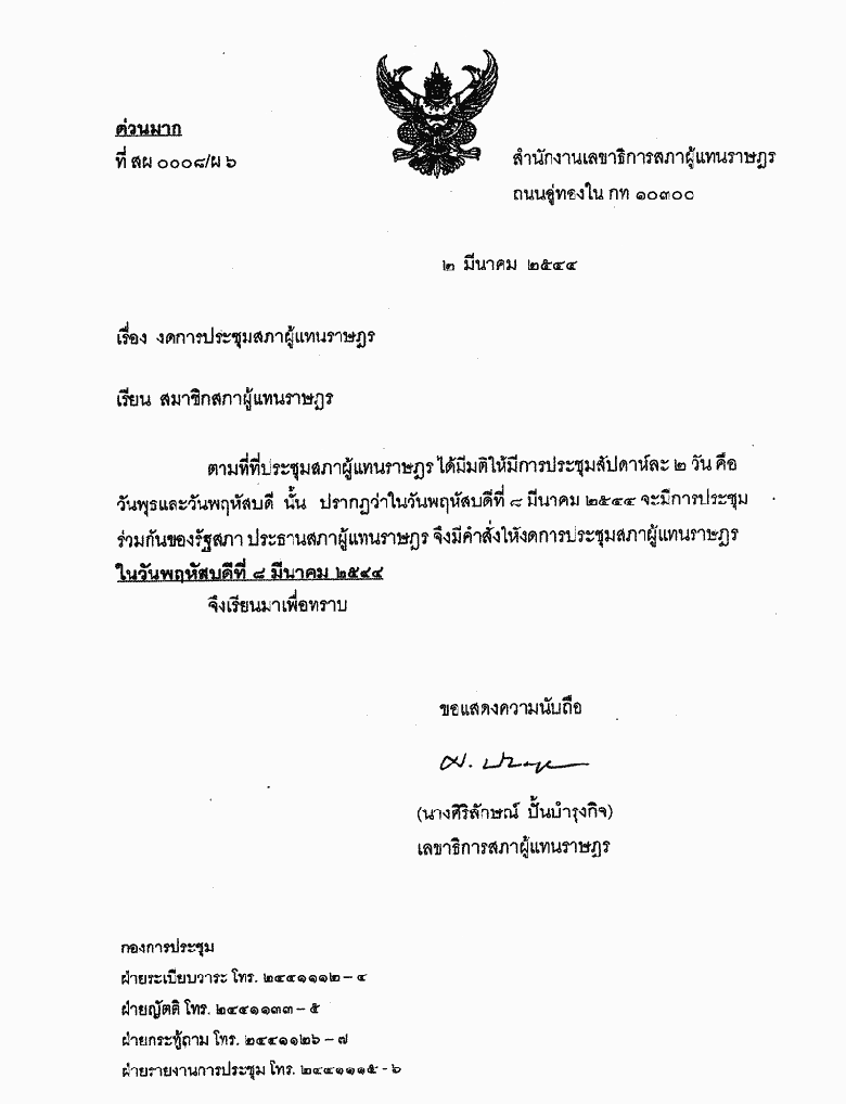 ระเบียบวาระการประชุมสภาผู้แทนราษฎร > ชุดที่ 21 > ปีที่ 1 > สมัยสามัญทั่วไป > ครั้งที่ 4