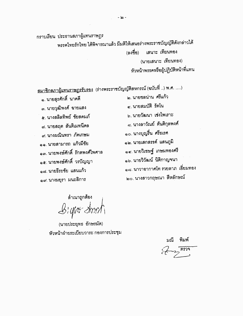 ชื่อเอกสาร :   ๖.๒ ร่างพระราชบัญญัติสหกรณ์ (ฉบับที่ ..) พ.ศ. .... (นายอำนวย คลังผา กับคณะ เป็นผู้เสนอ)