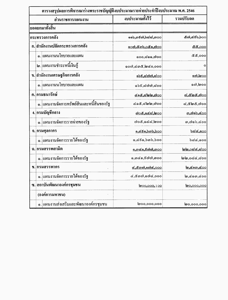 ร่างพระราชบัญญัติงบประมาณรายจ่ายประจำปีงบประมาณ พ.ศ. 2546 ซึ่งคณะกรรมาธิการวิสามัญพิจารณาเสร็จแล้ว