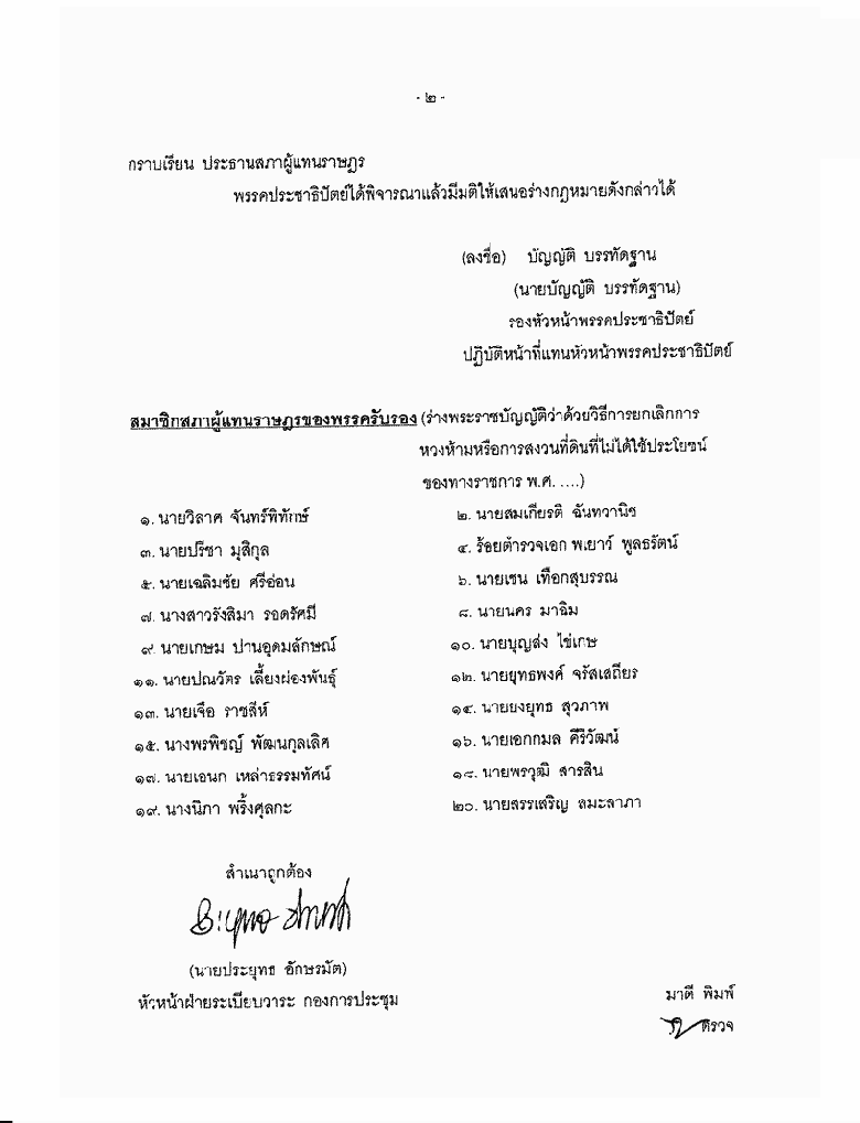 ร่างพระราชบัญญัติว่าด้วยวิธีการยกเลิกการหวงห้ามหรือการสงวนที่ดินที่ไม่ได้ใช้ประโยชน์ของทางราชการ พ.ศ. .... |