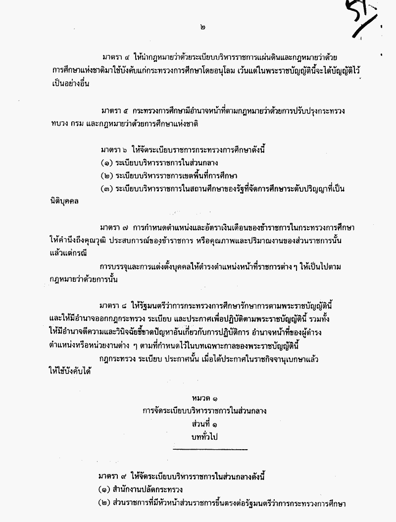 ชื่อเอกสาร :   ร่างพระราชบัญญัติระเบียบบริหารราชการกระทรวงทางการศึกษา พ.ศ.....
