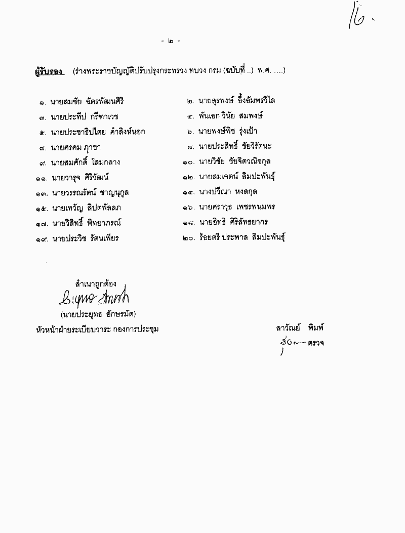 ชื่อเอกสาร :   ร่างพระราชบัญญติปรับปรุงกระทรวง ทบวง กรม (ฉบับที่..) พ.ศ ...... (นายวุฒิชัย สงวนวงศ์ชัย เป็นผู้เสนอ)