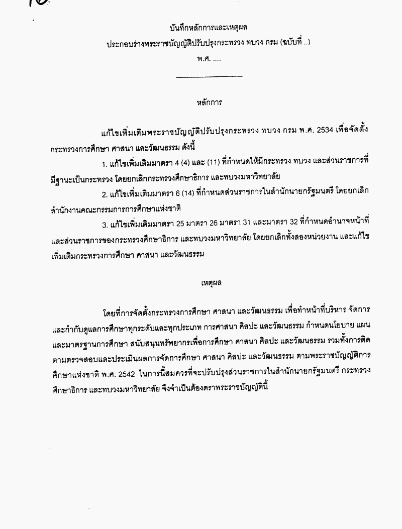 • ร่างพระราชบัญญติปรับปรุงกระทรวง ทบวง กรม (ฉบับที่..) พ.ศ ......